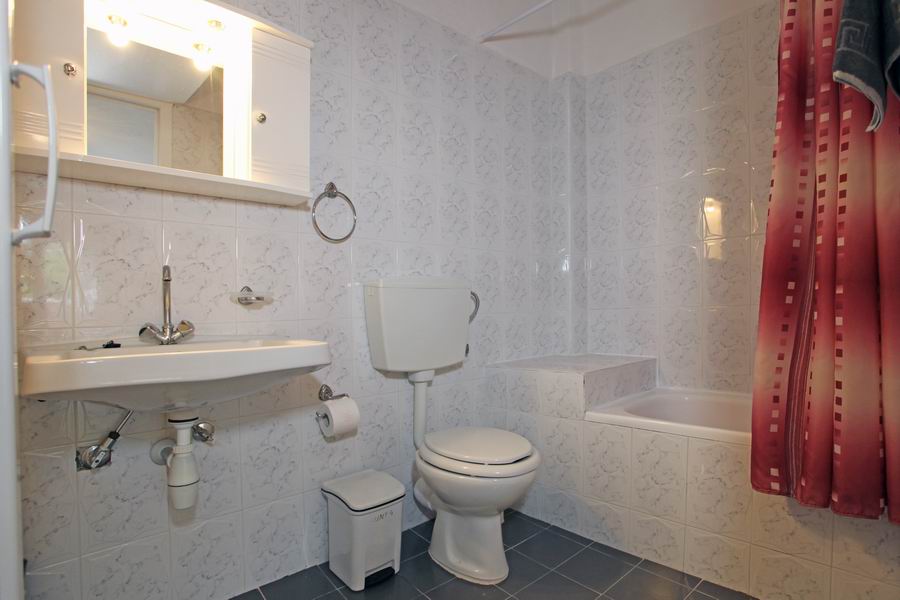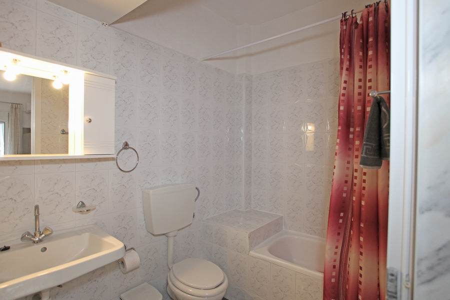 Tři pohodlná lůžka s pěnovými matracemi 80 cm šíře je možno doplnit o přistýlku, klimatizace s antibakteriální složkou s topným tělesem i pro možné vytápění v chladných měsících, samostatná koupelna s vanou a WC, elektrické zásuvky odpovídající koncovkám českých spotřebičů. Trezor. Lůžkoviny a ručníky jsou součástí krátkodobého pronájmu.